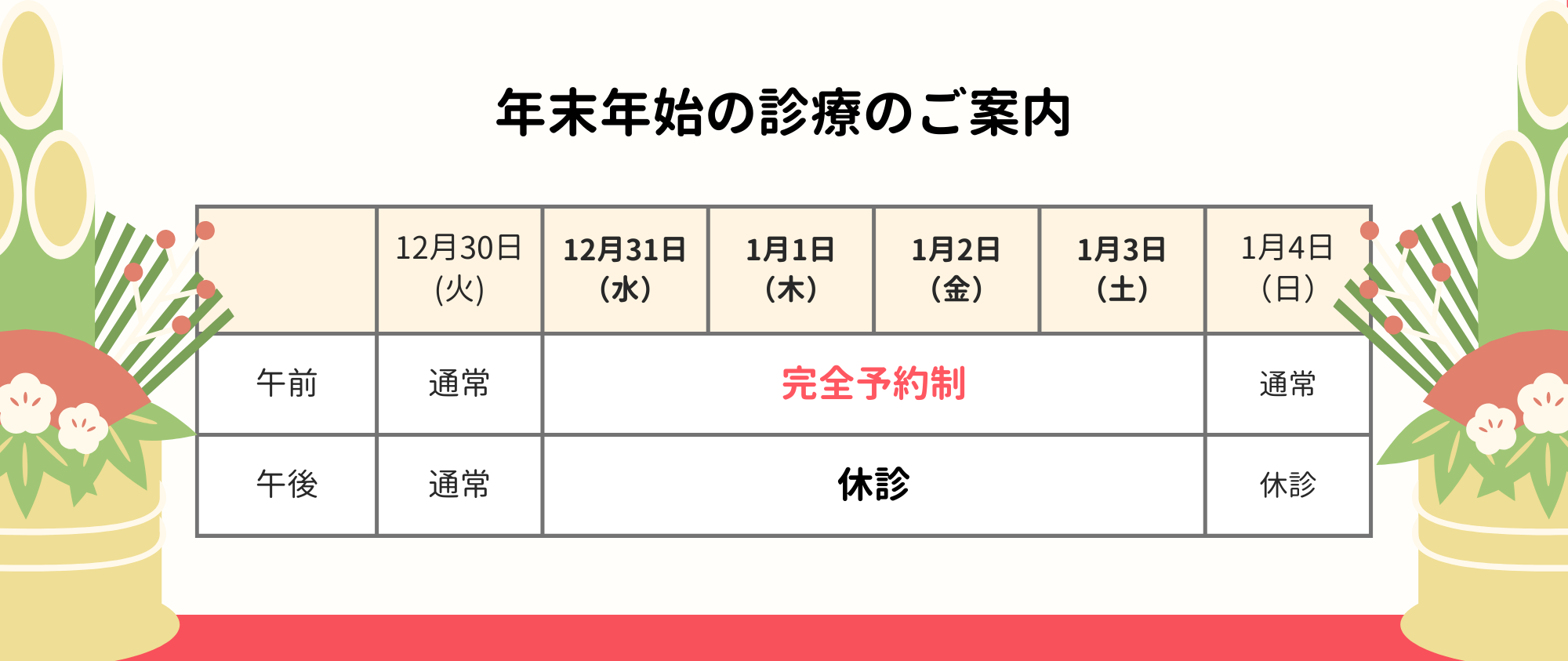 12/31 ~ 1/3は午前のみ完全予約制で診察を行います。